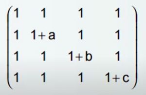 (ITA-SP) Quaisquer que sejam os números reais a, b e c, o determinante da matriz abaixo é dado por: