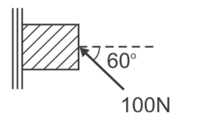 (CEFET-PR) Na figura, um bloco que pesa 120N, é sustentado por uma força igual a 100N, O menor valor que do coeficiente de atrito que mantém o bloco em equilíbrio, é próximo de: